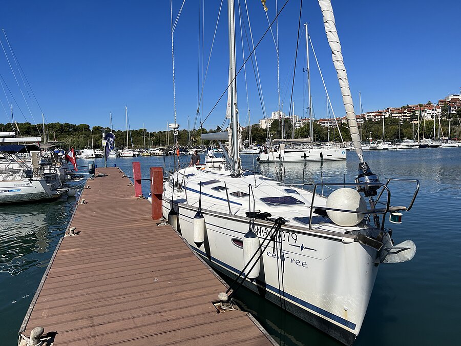Für den diesjährigen Prüfungstörn mit 6 Prüflingen war als Ausgangsbasis die Marina Veruda südlich von Pula auf der istrianischen Halbinsel vorgesehen. Unser Prüfungsboot war – wie auch bereits beim Meilentörn – eine Bavaria 51 Cruiser, Baujahr 2008. Ein perfektes Prüfungsboot, das wir bewußt so gechartert hatten: Obenliegender Gashebel, einfache Leinenführung für die Großbedienung, 1 Spatenruder, Saildrive.
